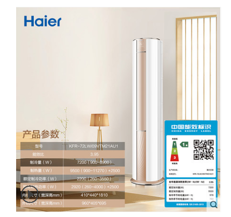 商品名称:Haier/海尔 KFR-72LW/09VTM21AU1 3匹一级能效立式家用空调