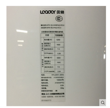 商品名称:Leader/统帅 KFR-50LW/08PAQ13TU1 2匹圆柱智能冷暖空调柜机