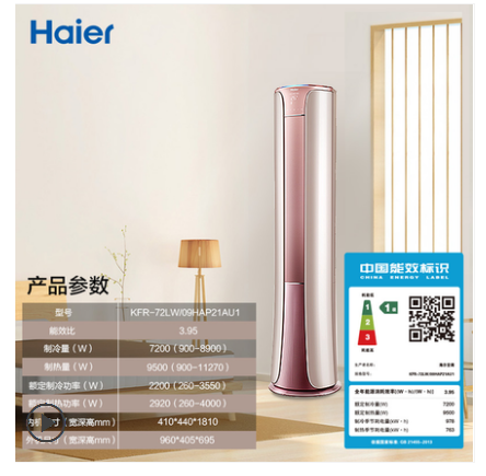 商品名称:Haier/海尔 KFR-72LW/09HAP21AU1 海尔3匹变频一级能效柜机空调