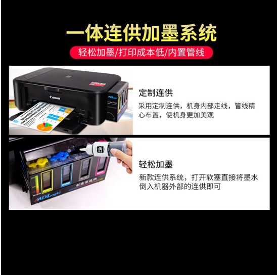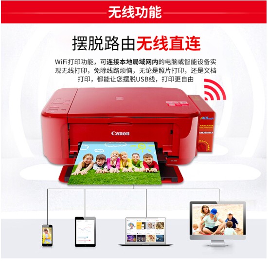 佳能(CANON) MG3680无线彩色家用照片打印机 自动双面复印扫描A4打印一体机 魅力红 套餐三(豪华连供循环加墨)