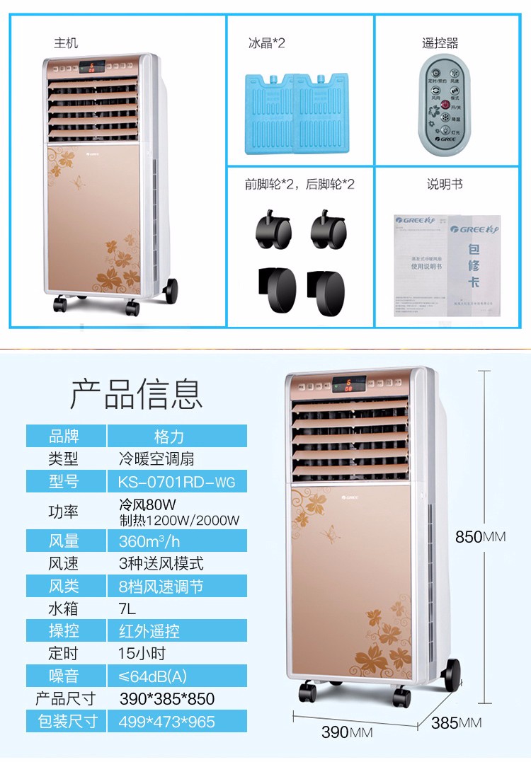 商品名称:格力冷风扇_冷暖两用 8档风速_KS-0701RD-WG 银色+香槟金_A0011007800