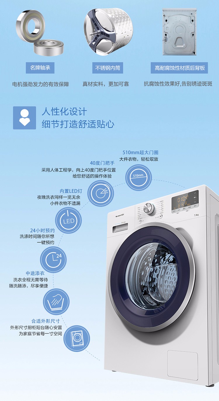 格力变频滚筒洗衣机_7kg洗涤量 14种程序_XQG70-B1401Aa 白色_MP030000100