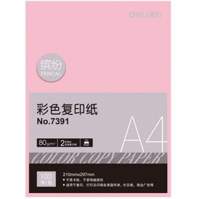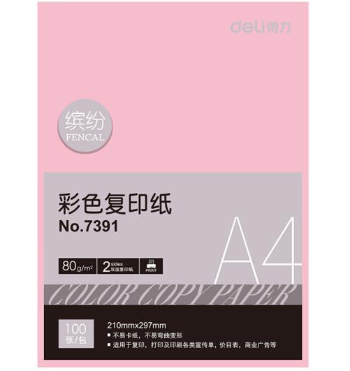 商品名称:得力(deli) 7391A4 浅红色彩色复印纸 80g 100张/包 单包装