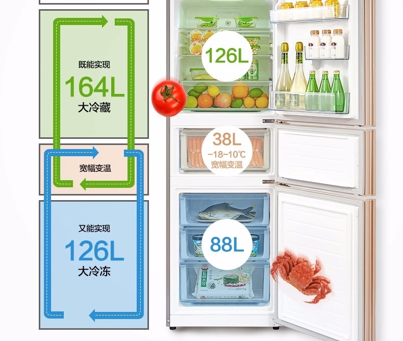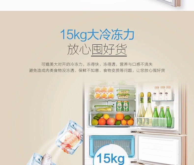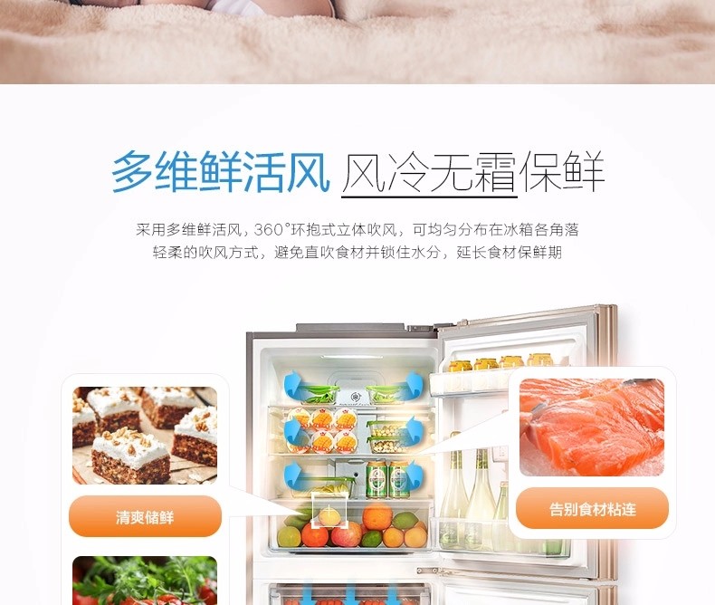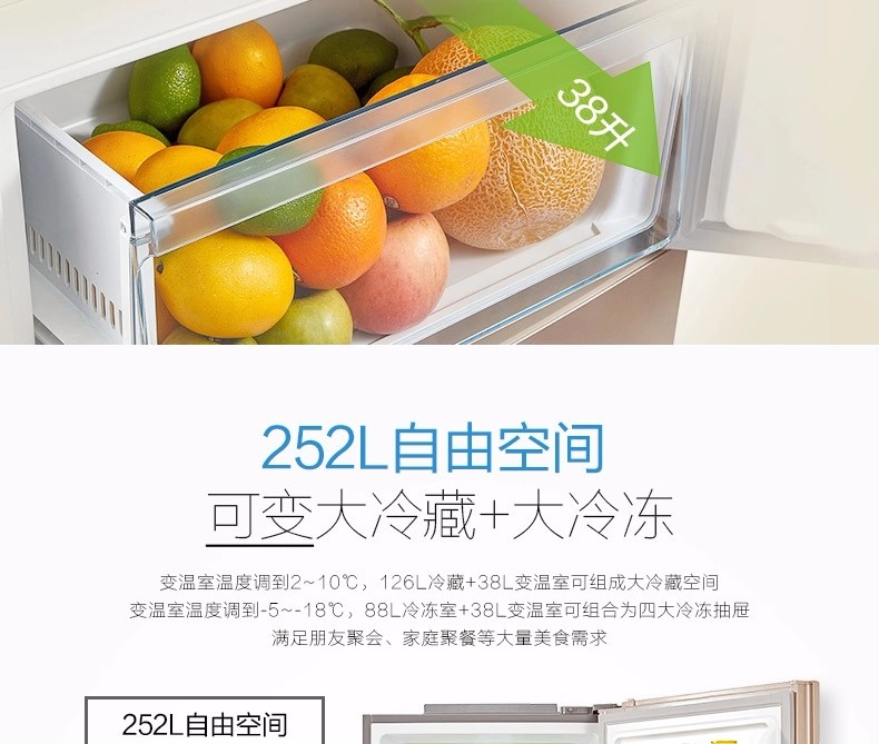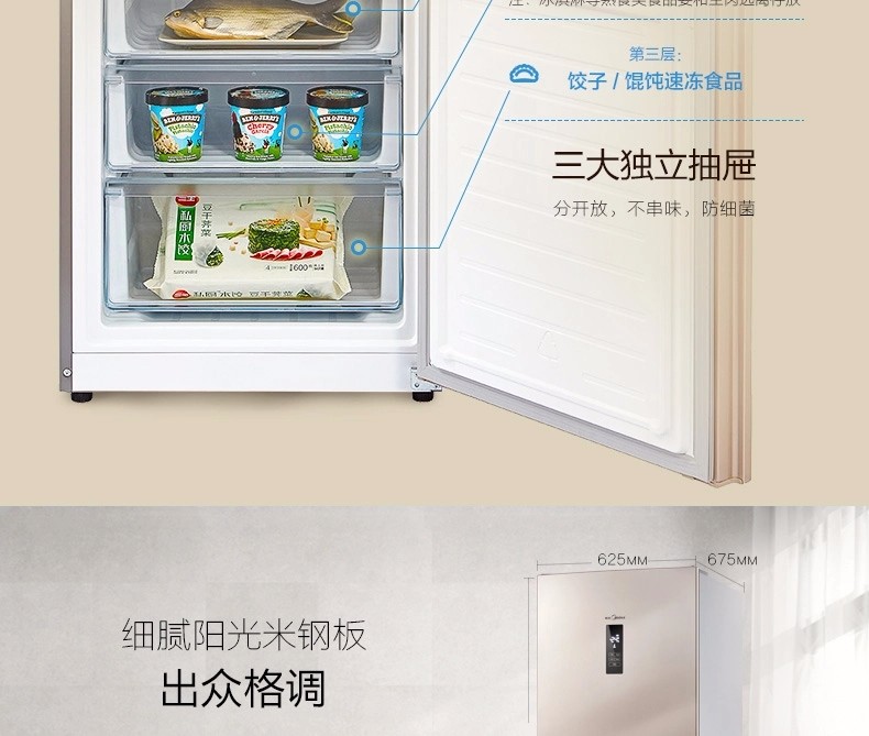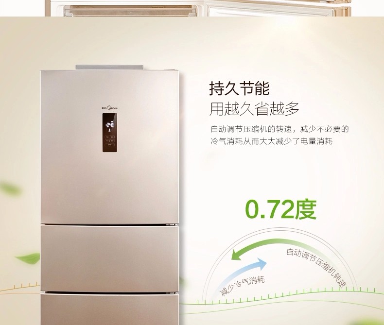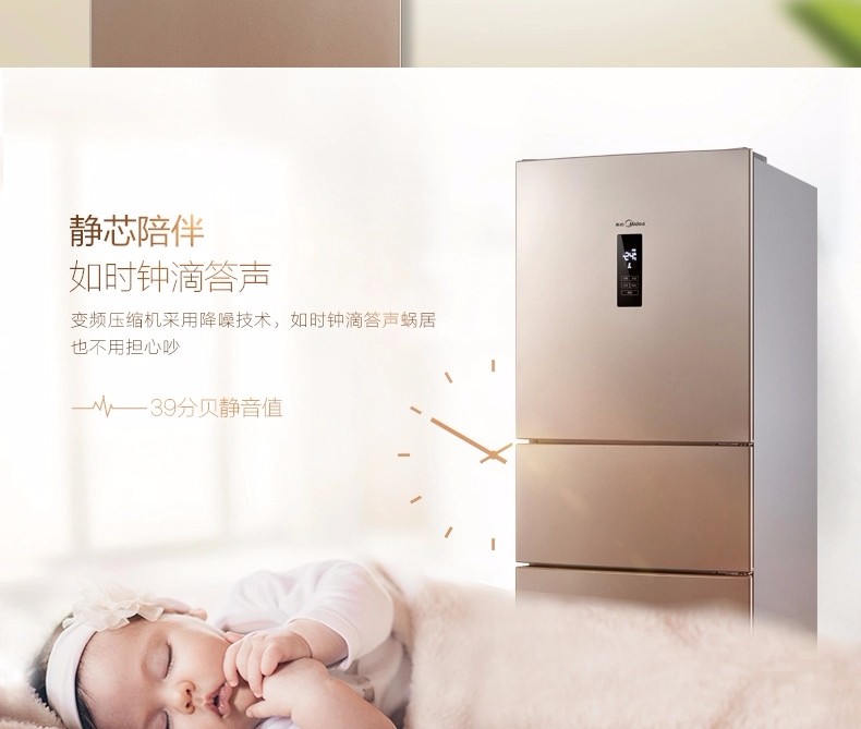 商品名称:【新品】美的(Midea)冰箱三门 小型家用 无霜变频冰箱 三门冰箱 BCD-252WTPM(E)