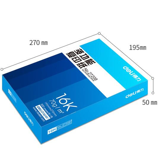 商品名称:得力(deli) Z720916K 珊瑚海复印纸 70g 500张/包 8包/箱